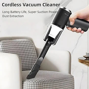 Cordless & Portable: The lightweight, wireless design allows for easy manoeuvrability and portability, so you can clean your car, furniture, or tight spaces around the house without any limitations.