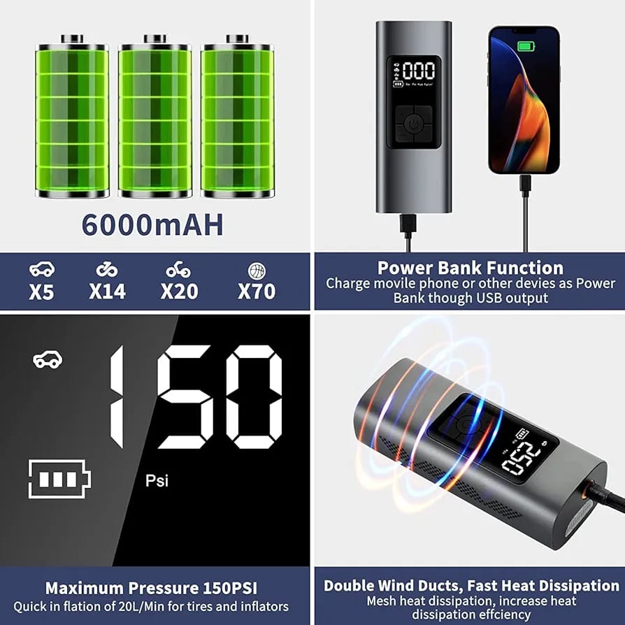 Air Compressor Power Bank – Dual Function Power on the Go!