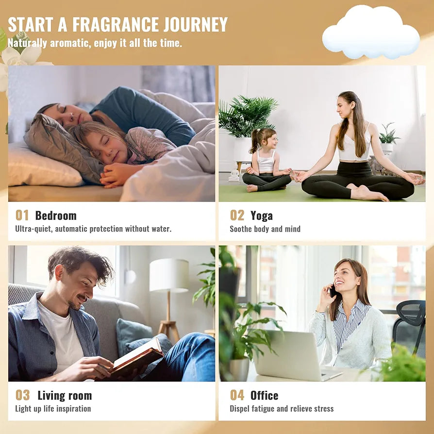 Functions: humidification, aromatherapy, timing, sleep aid, atomizer, mute, lighting, automatic aerosol distributor, diffusion