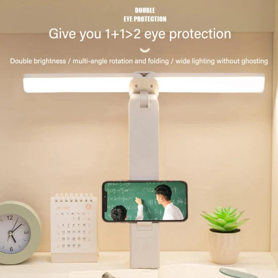 This LED table lamp is the perfect addition to any study or workspace. With its double head design, it eliminates ghost shadows and provides a wide lighting range and angle. The foldable design also helps reduce writing shadows, making it easier to work or study without any distractions. The lamp is also dimmable, allowing you to adjust the brightness to your preference. Its sleek and modern design makes it a stylish and functional choice for any room. Get your hands on this reliable and efficient foldable study lamp today!