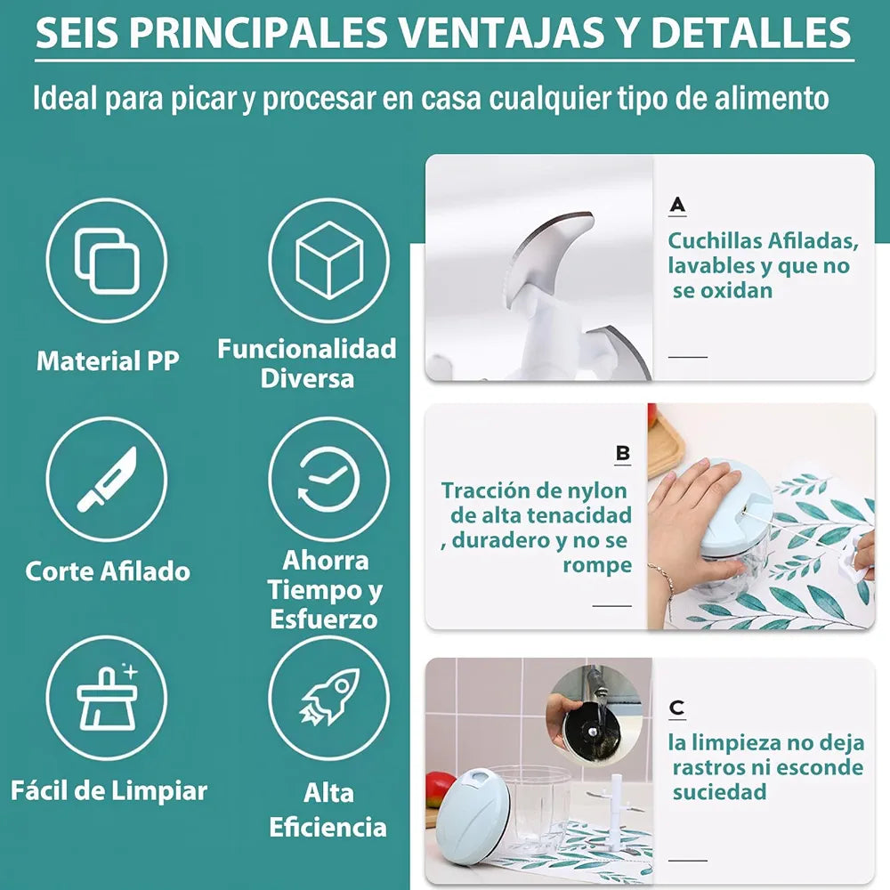 - Easy Use of Garlic Mincer: Pull the string 5-6 times for perfectly coarse dices, continue with 10-12 for medium, 14-17 for fine and 20+for smooth liquid purees.