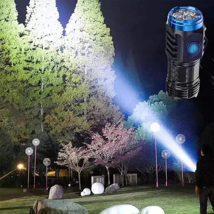 - DURABLE CONSTRUCTION: Built to withstand the rigors of outdoor adventures, this Three-Eyed Monster Mini Flash Super Power Flashlight is waterproof and shockproof. Afraid of bumps and knocks, resistant to drops and abrasions, which improves the life of the flashlight.