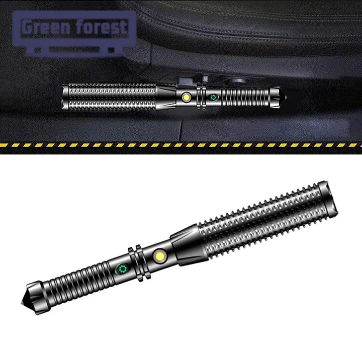 Multifunctional design enables this flashlight to not only provide high brightness lighting but also be used to crack the car window for lifesaving.