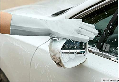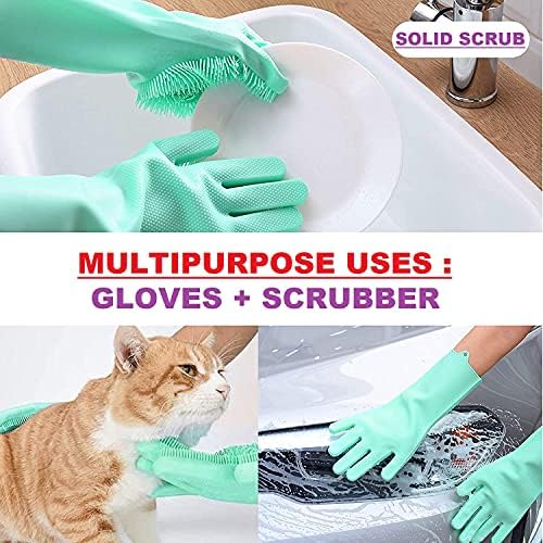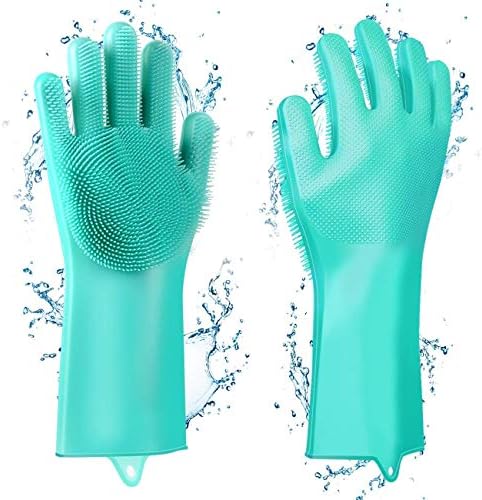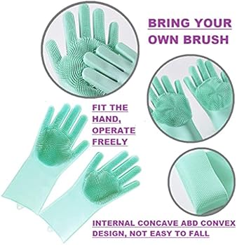 The gloves with scrubbers are easy to use they‘re soft and flexible it saves money with its fast -foaming feature, and it leaves no scratches on kitchenware & glass with its soft silicone bristles.