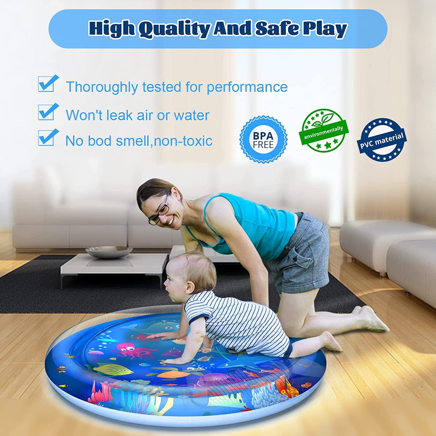 our water play mat is larger than most standard mats, giving your baby more space to move, explore, and enjoy. No more worrying about bruises from crawling on hard floors โ your little angel gets a soft, spacious surface to strengthen their skills.